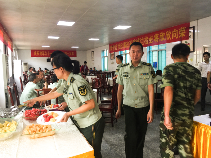 2018年7月31日晚,防城港市边防检查站在基地隆重举办“8.1”慰问老战友活动,特请防城港深航国际酒店承担本次活动的自助餐接待服务工作。为做好本次接待,深入体现深航品牌含金量,在张总的指导下,由市场销售部经理李雄环女士统一协调,西厨厨师长李嗣乐先生带领厨房骨干和楼面服务人员,从食材选料、场地布置、服务流程、食品运输等各环节严格把关,认真按照部队领导的要求精心准备,用细致入微的深航特色服务和出品,为边防战士们奉上了美味可口的节日大餐,受到了部队官兵的一致赞扬。