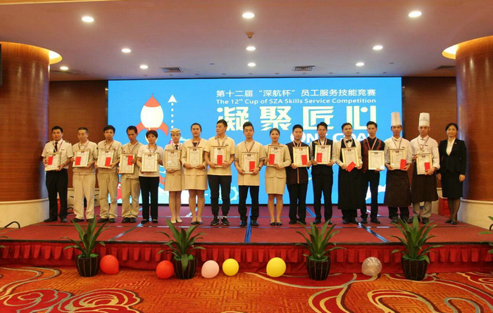 第十二届“深航杯”员工服务技能竞赛以“凝聚匠心”为主题,希望大家能够在工作岗位中挑战自我,不断创新,提升自身服务与工作技能。此次技能竞赛包括中、西式创意美食、中、西式宴会主题摆台、灭火器百米灭火、星三角启动、入住退房办理、接机预定及客房服务等共计17个赛项。