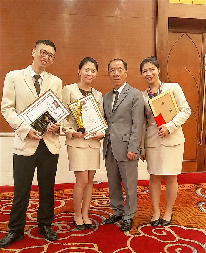 在9月4日结束的酒店内部员工技能竞赛中他获得了亚军(左一)