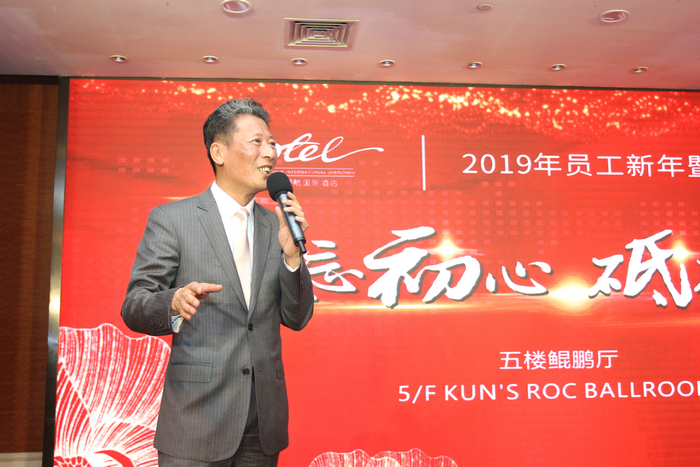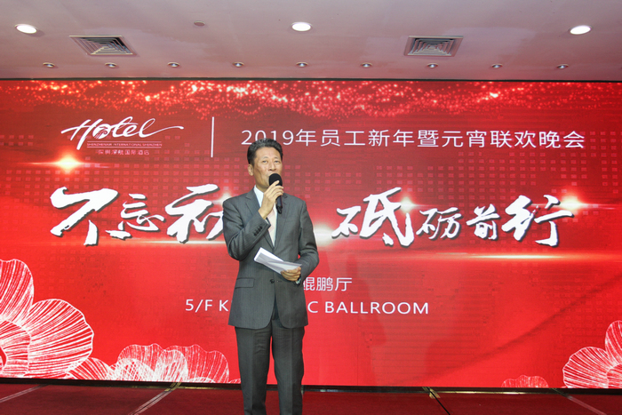 2019年2月18日,深圳深航国际酒店鲲鹏厅一片欢声笑语,酒店总经理黄俭、常务副总经理魏文斌、副总经理肖强率酒店管理团队与二百余名员工欢聚一堂, 活动当晚还邀请了深航酒店管理公司团队的领导和同事, 共同迎接猪年新春及元宵佳节!