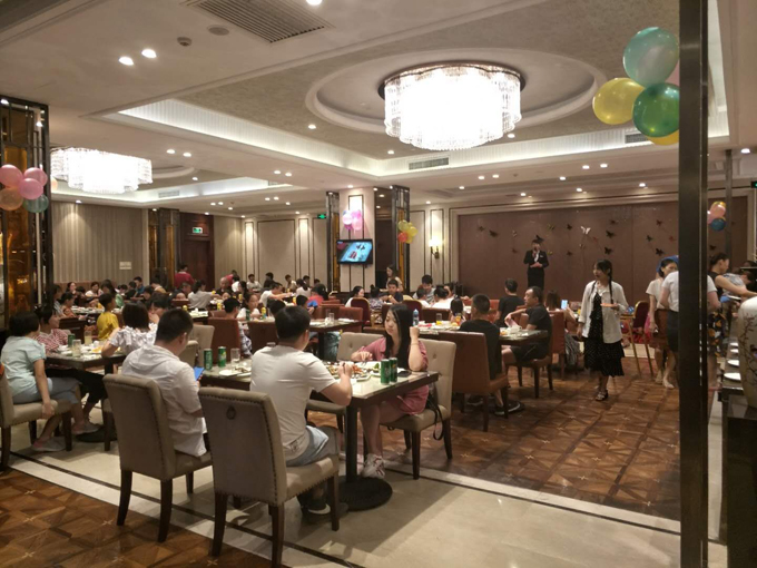 餐厅内外饰以的气球,缤纷多彩,傍晚18:00整,一款款儿童主题菜品、各式卡通人物蛋糕相继而出,供小朋友们尽情享用。用餐过程中,现场主持人与小朋友们互动竞猜谜语赢得在座宾客阵阵掌声,更激动人心的还有幸运大抽奖活动,全场欢声笑语,热闹非凡。整个餐厅沉浸在浓浓的节日气氛中,每一个孩子的脸上都洋溢着幸福和喜悦的笑容。