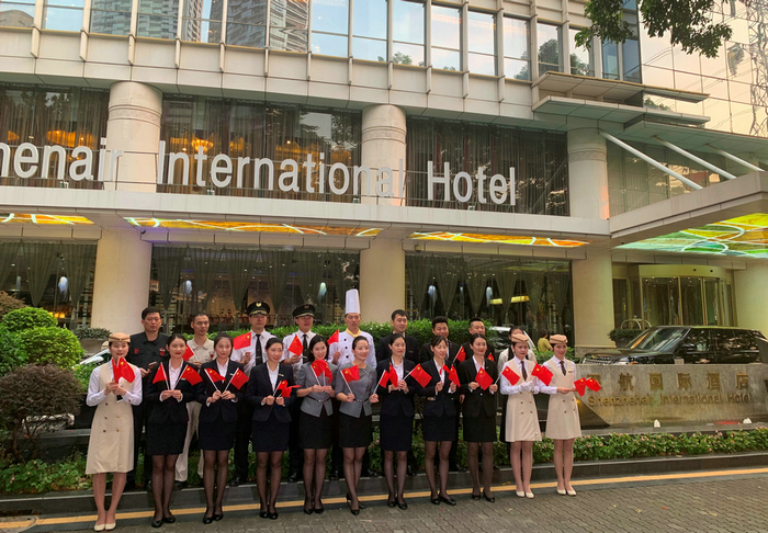 为了隆重庆祝中华人民共和国成立70周年,深圳市旅游协会、深圳市旅游志愿者总队在深圳市内统筹拍摄为祖国华诞献礼视频。深圳深航国际酒店作为深圳市国人管理的五星级酒店典范,荣幸受邀参与此次具有历史性意义的拍摄。