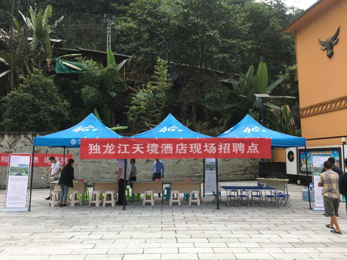 2019年8月10日-12日,独龙江天境酒店在乡政府广场进行为期3天的现场招聘会,此次招聘会独龙江乡政府和中国移动公司给予了大力支持与关心,顺利完成了酒店第一期招聘工作。
