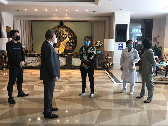 2020年2月25日,酒店根据当地政府复工文件精神指示召开疫情防控及复工准备工作会议。会议上,酒店总经理张庆斌先生明确指出疫情防控工作与经营管理工作要两手一起抓,并对疫情防控工作、复工前期准备工作以及经营工作逐项安排落实到各部。业主公司代表保棋先生发言,要求各部须按工作安排按时按质完成,并希望各部门协同配合,全体员工尽心尽责,共渡难关。