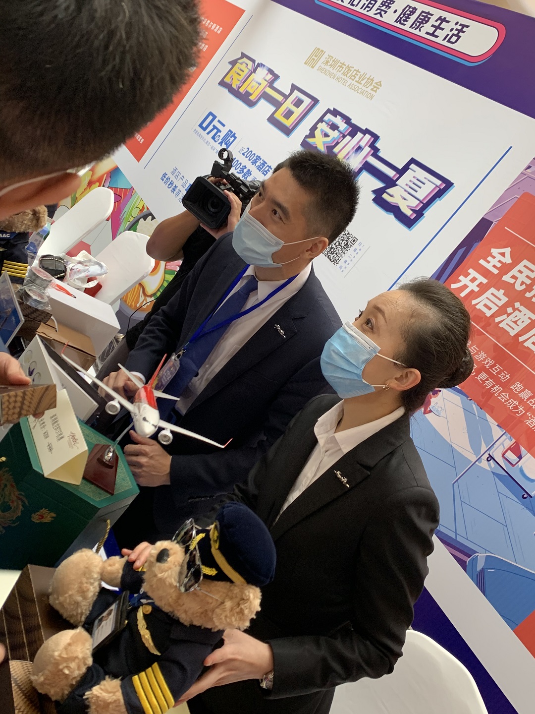 深圳深航国际酒店展位现场凭借极具航空特色的机长熊,飞机小香皂礼盒,端午粽飘香礼盒等吸引了不少市民驻足咨询,并实现了现场售出。尤其,机长熊更是深受大小朋友喜爱。