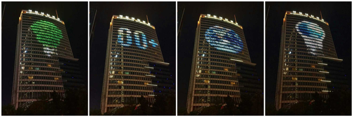 深航国际酒店利用户外楼体灯光进行前期公益宣传