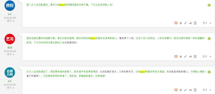 其实,简单的一份祝福,一份惊喜,却真的会让客人留下了记忆深刻的住店体验。犹如薛小姐后写的表扬信上所言:太意外也太惊喜在这个特别的日子你出现在我眼前,给我留下最特别的回忆,我会永远记得2016年5月18日。