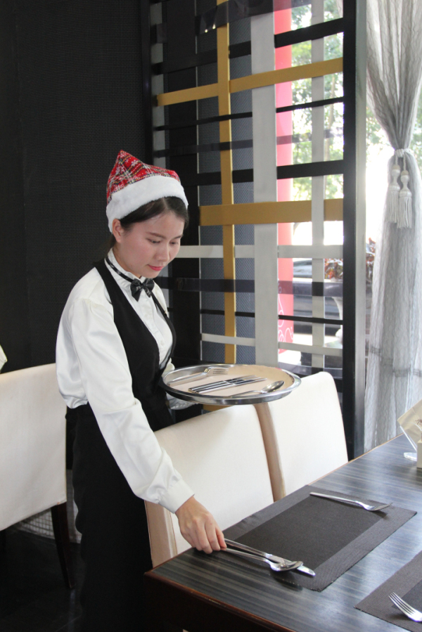 一开始,很多西餐专业知识并不是特别熟悉,也犯过一些小错误,但感谢主管的引导及鼓励,慢慢地让我树立信心。通过专业技能培训、沟通技巧培训,不断积累经验,慢慢地摸索到了服务的技巧。