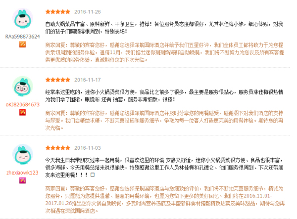 在深圳深航国际酒店工作,真的很开心、也很顺心。这里有友善的团队,优质的客人,良好的培训,每天不断学习不断成长。最开心的莫过于自己的付出,客人真的看在眼里,并能得到客人的认可及赞许。