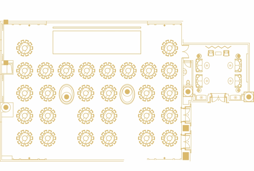 鲲鹏厅,圆桌28桌以内为佳,最多可容纳30桌(10人/桌)。