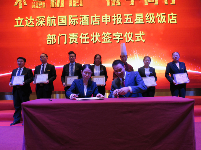 两年磨一剑,百日铸辉煌,如果把过去的时光比作一场长跑的话,那么接下来我们将要共同冲刺第一个目标。为了争当区域行业前茅,提升酒店服务品质,建立起规范的星级酒店管理和服务模式,立达深航国际酒店即将拉开国家五星级饭店评定的帷幕,全体干部员工即将踏上一段荣誉征程。在这个吉祥喜庆的时刻,我们欢聚在一起,用丰收的锣鼓共同见证立达深航国际酒店开启新的里程碑!