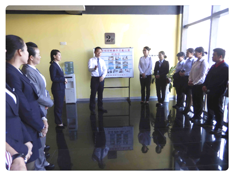 杨经理在向南宁同事们介绍公寓的各部门管理人员及公寓的概况。
