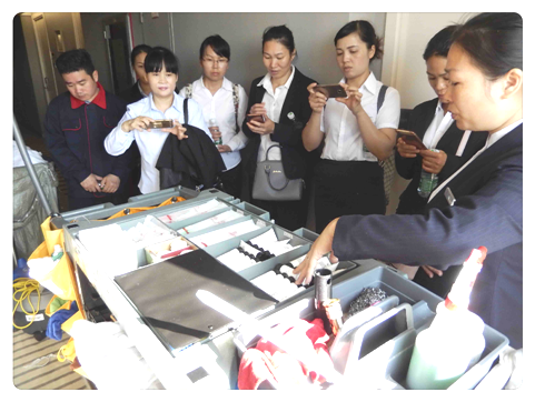 客房部吴主管引领南宁同事下参观了客房、工作车和工作间,并对每一处都做了详细的介绍。