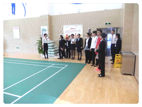 一行人来到了员工活动中心,这次我们派出了文体的资深服务员做讲解,按照羽毛球场到泳池-乒乓球室-健身房-桌球室-瑜伽馆的顺序一一进行了介绍。
