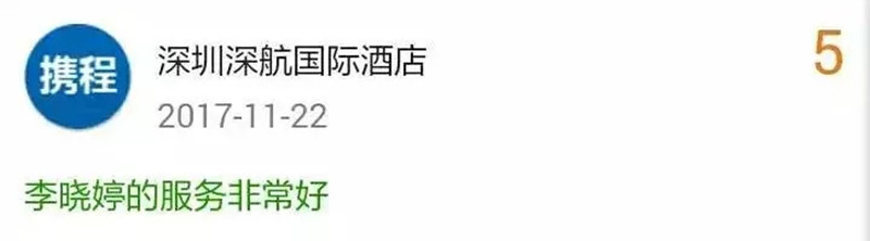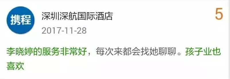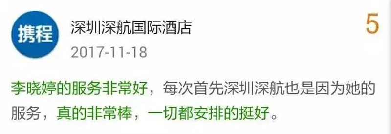我们的行政楼层主管——李晓婷以最多网评点名表扬,再次获得11月份服务明星的称号!