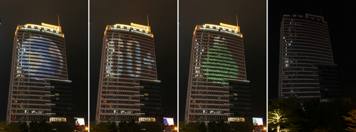 酒店户外楼体灯光前期宣传及与熄灯后的对比