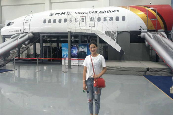 参观的首站是位于基地新东区的飞行培训楼,全新的大楼内矗立着两台空客A320和一台波音737模拟机, 这里培养出了众多优秀的飞行员。 讲解员向?嵩泵窍晗附樯芰朔尚性钡呐嘌蹋ü细竦难盗泛涂己耍庞锌赡艹晌幻鞣缪辖鞯纳钲诤娇辗尚性保?为每一位乘坐深圳航空的旅客保驾护航。
