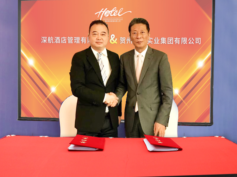 2019年5月18日,深航酒店管理公司与广西贺州旅游实业集团成功签约。本次签约仪式在深圳文博会酒店分会场举行,贺州旅游实业集团有限公司董事长潘达超,总经理黎昌贤、副总经理王园及深航酒店管理公司总经理黄俭、酒店事业部副总经理欧波出席了本次签约仪式。