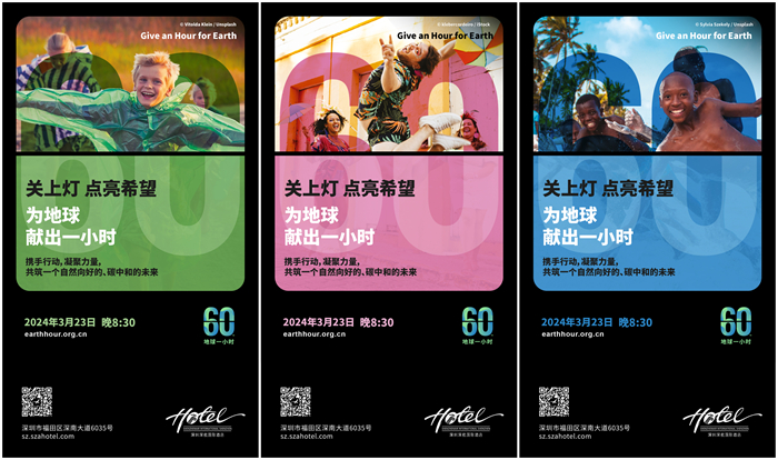 关上灯,点亮希望!深航酒店管理公司一直将保护环境、积极应对气候变化视为己任,自2013年至今第12个年头一直参与由世界自然基金会(WWF)发起的“地球一小时”活动,为保护地球拯救环境贡献自己的一份力量。今年地球一小时的主题是“为地球献出一小时”,助力“2030目标”更深入人心。其主旨在于采取行动,保护地球,共筑自然向好的、碳中和的未来。
