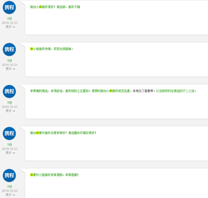 全心全意为顾客服务,是服务行业的一句老话。不断超越客人的期望,为客人制造惊喜,才能赢得宾客的满意。申素玲就是这样,她诚心服务,微笑待人,细心接待,用心工作,始终保持着积极向上的精神风貌,同时也取得了许许多多客户的好评。深圳深航国际酒店就是因为有许许多多像申素玲这样的优秀员工,日夜工作在平凡的岗位上,把微笑和满意留给顾客,良好的团队氛围,在工作中你追我赶,成就了酒店的良好品牌。也最终以令深圳深航国际酒店,在携程网2016年年度深圳五星级客户满意度排名第4名(4.7分),全年65个满分日。在泰国曼谷举行的2016亚洲旅游年度风尚大典上,深圳深航国际酒店凭借良好的在线网评口碑及卓越的创新服务品质,喜获“亚洲最佳商务酒店”殊荣。