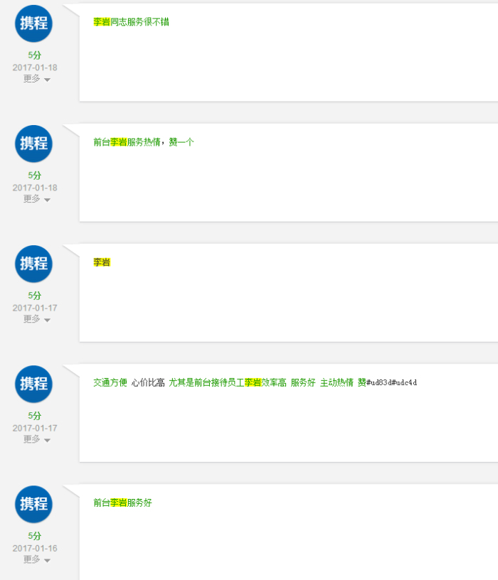 来自客务部的李岩,在2017年1月份,凭借着真诚体贴优质的服务,赢取了33个满分表扬。一个月获得33次5分满分表扬的背后,绝不是偶然,李岩所付出的努力,肯定不容忽视,辛勤的背后,今天也来探究一下他的工作心得。