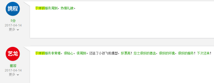 姓名:于琳颖(客务部)